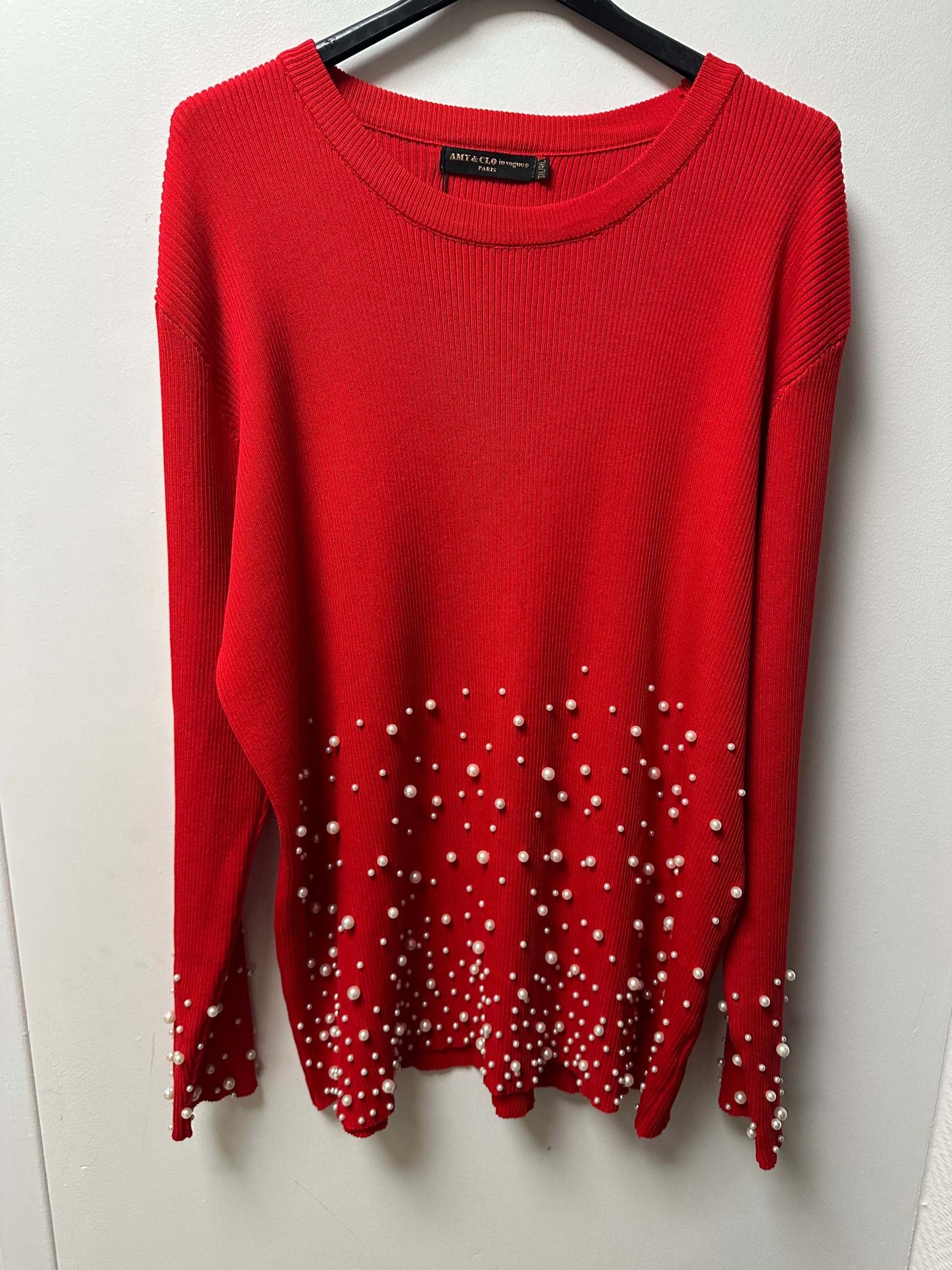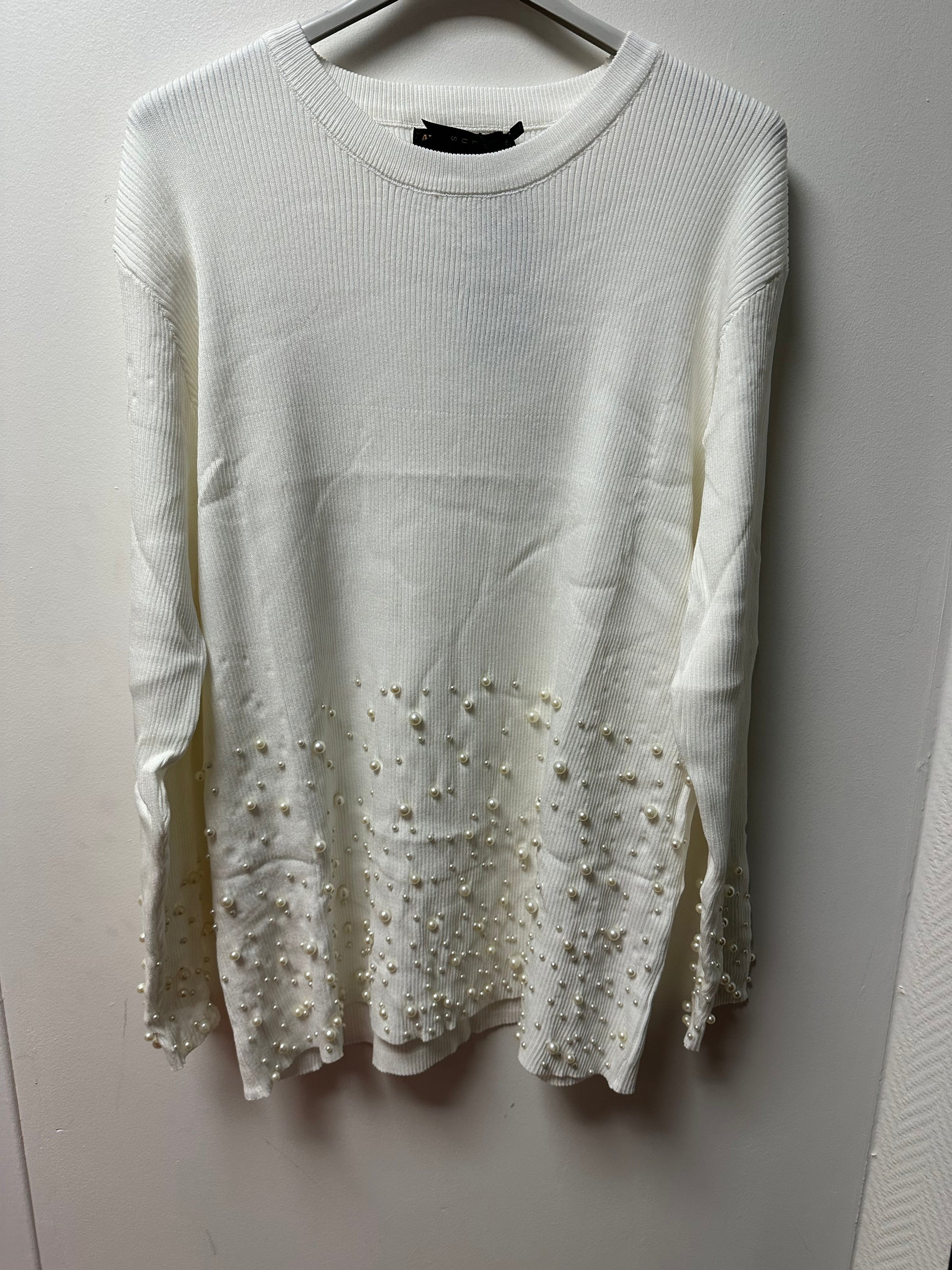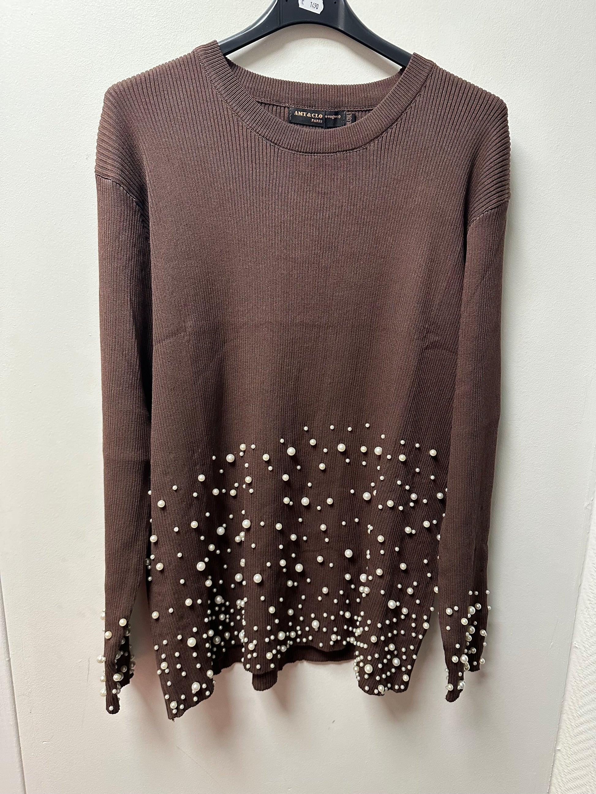 Magnifique pull long en matière côtelée, proposé avec des fantaisies
