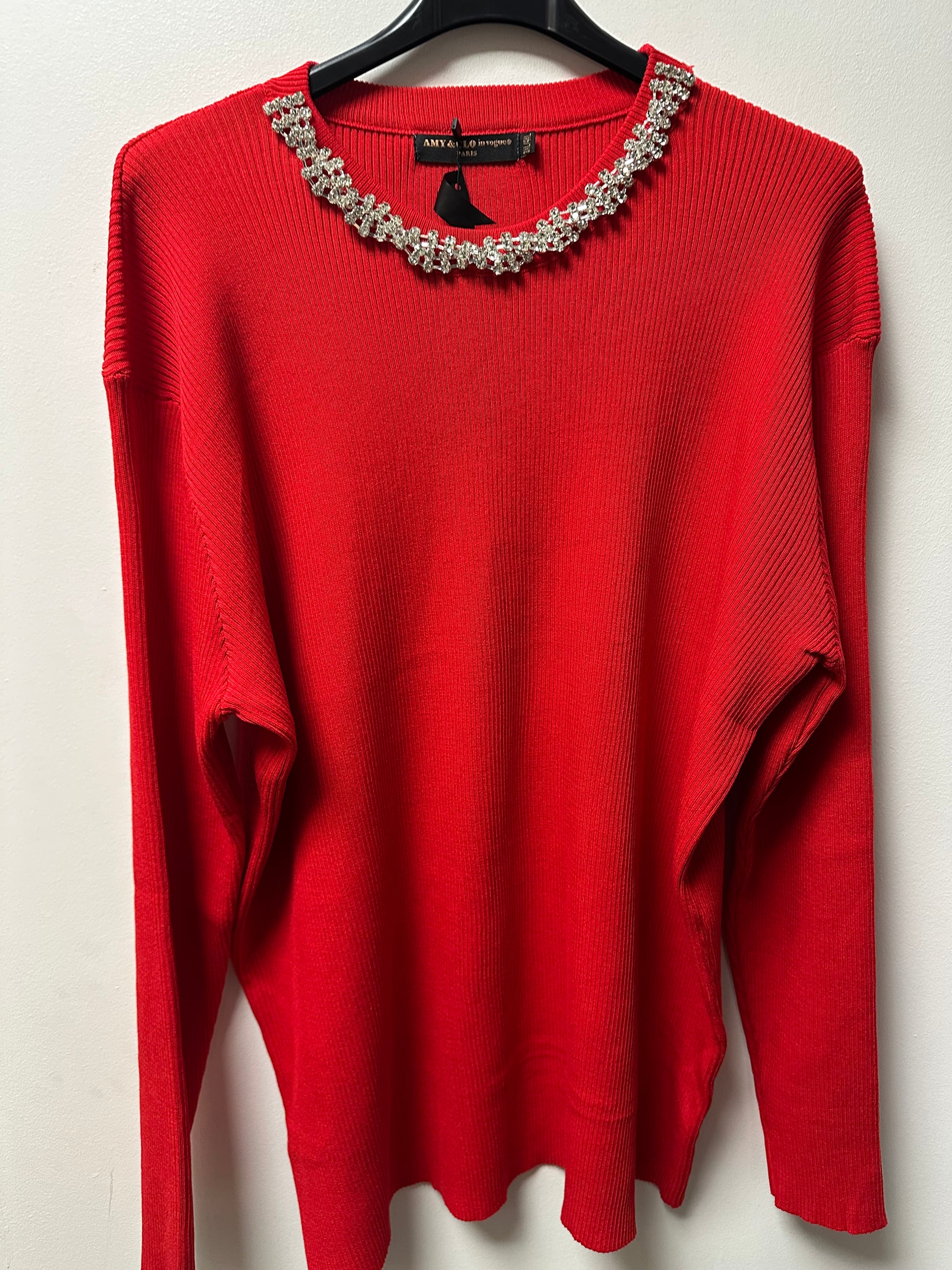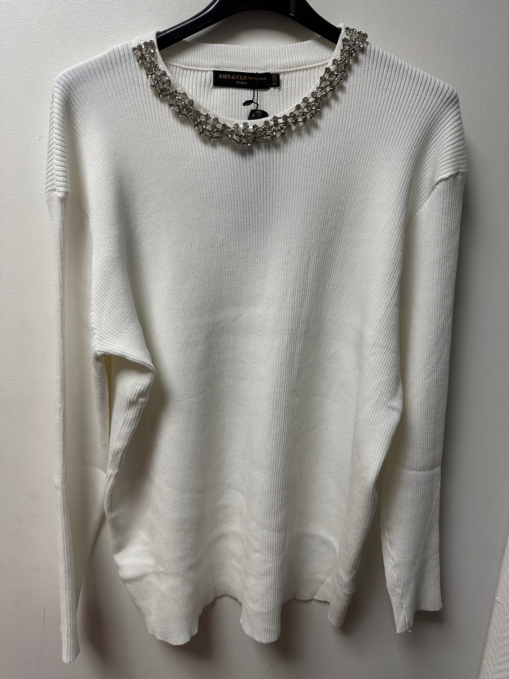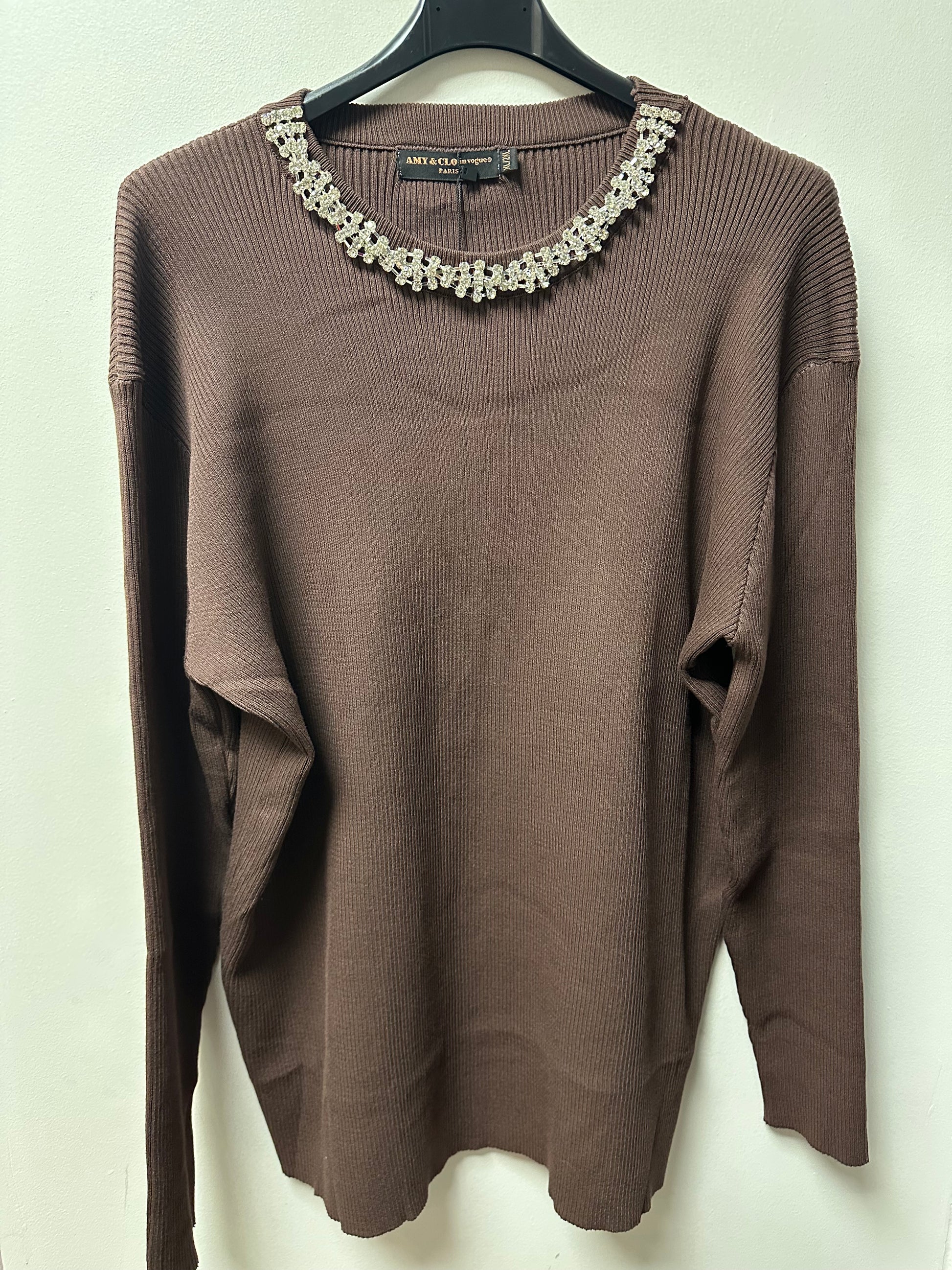 Magnifique pull long en matière côtelée, proposé avec des fantaisies