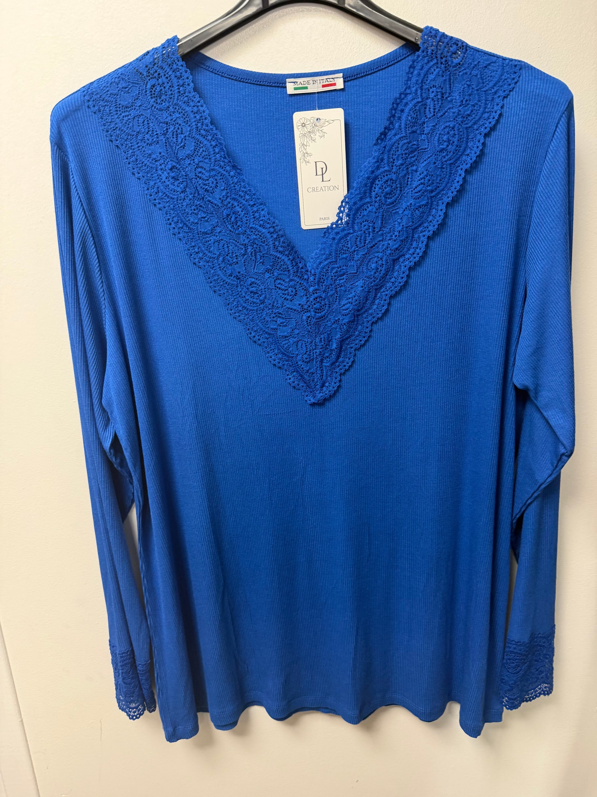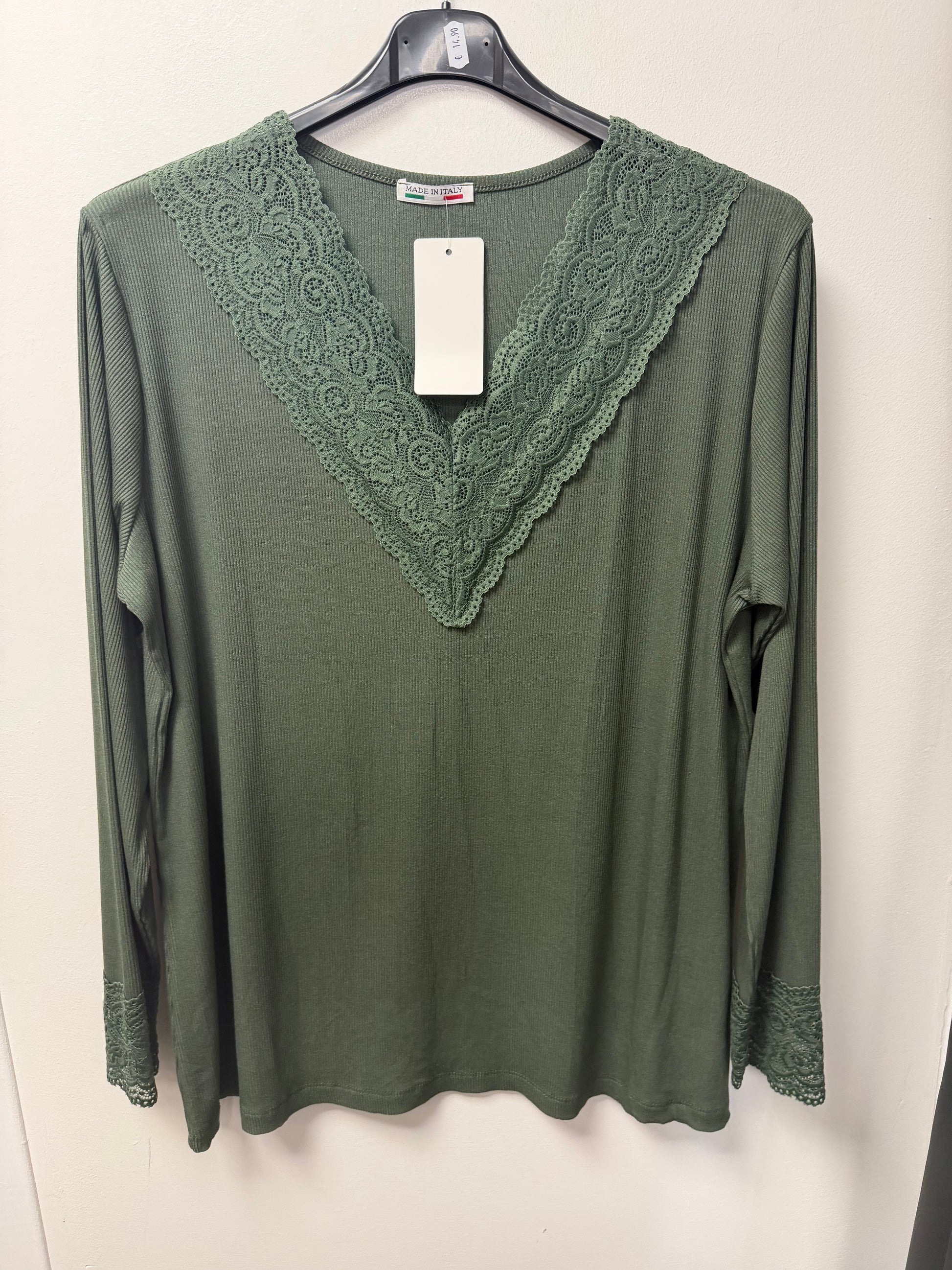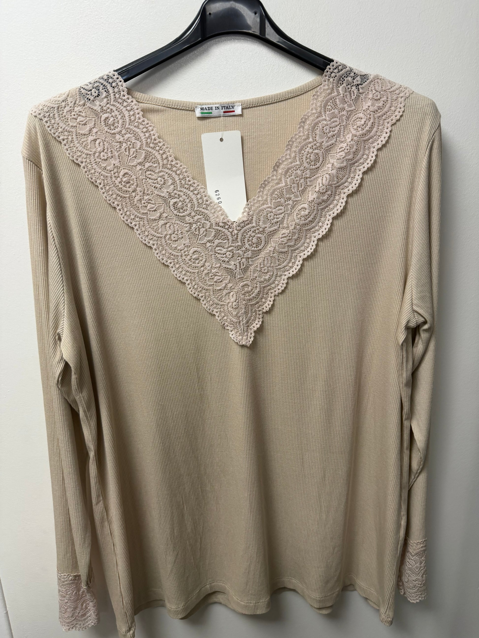 B1 Top Côtelé avec Encolure en V et Bordure Dentelle