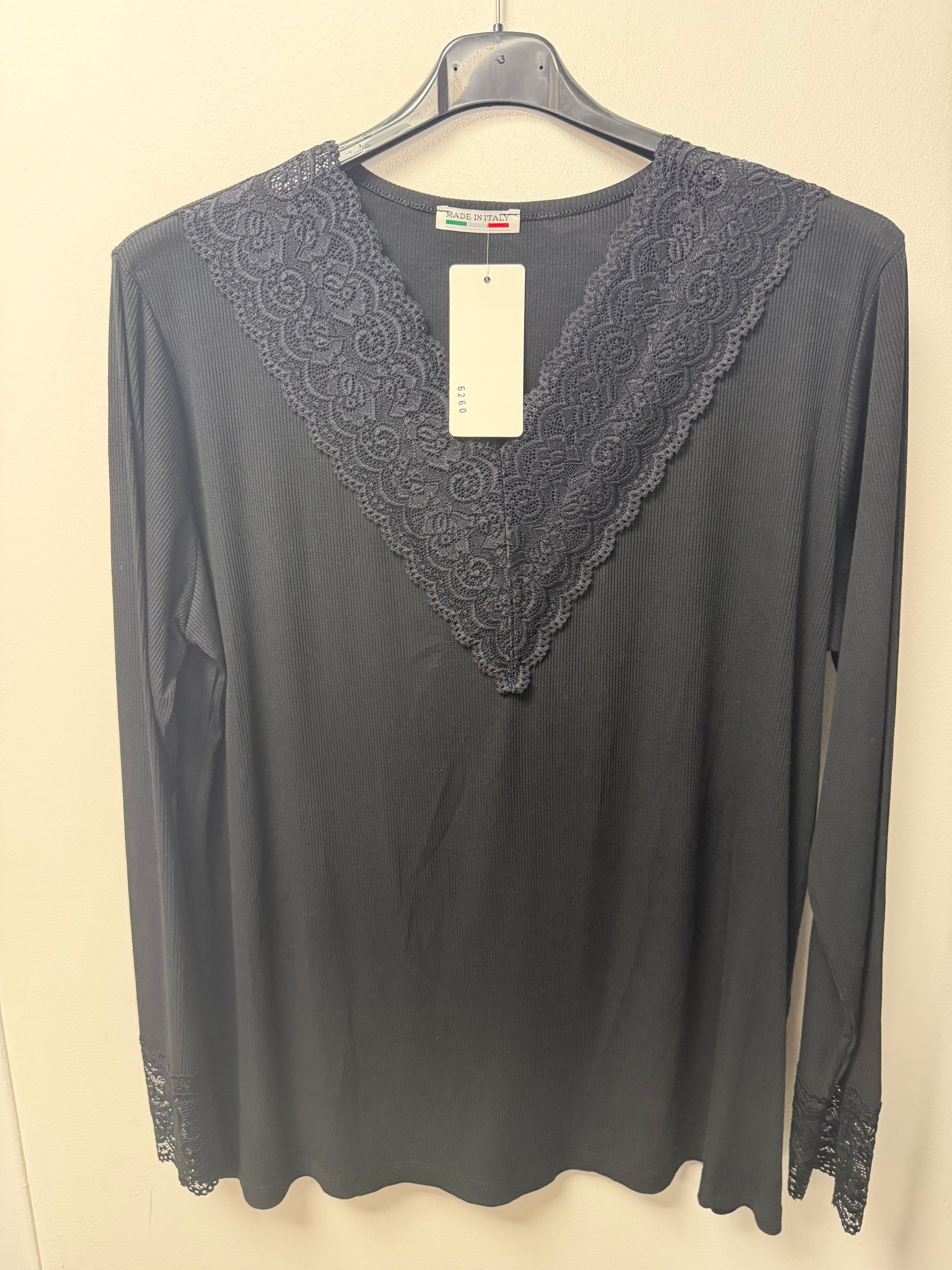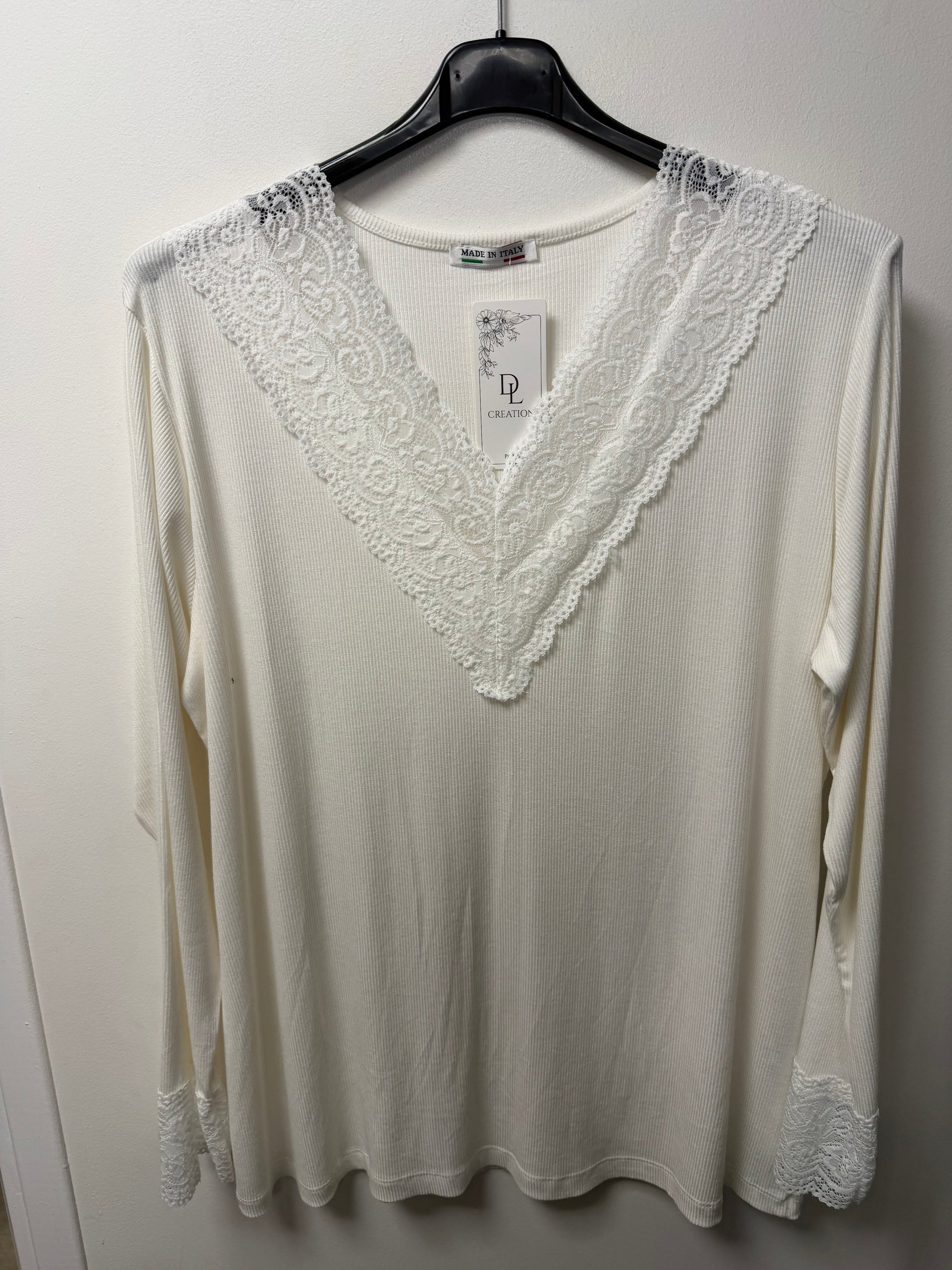 Le basique indispensable revisité. Ce top près du corps combine le confort du jersey côtelé et le raffinement d'une large dentelle florale au décolleté .95% viscose 5 % élasthane